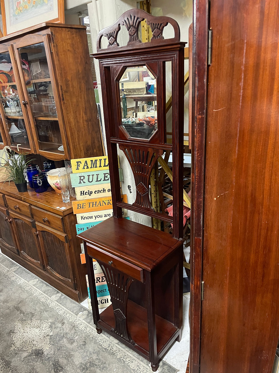 Antique Style Hall Tree with Drawers